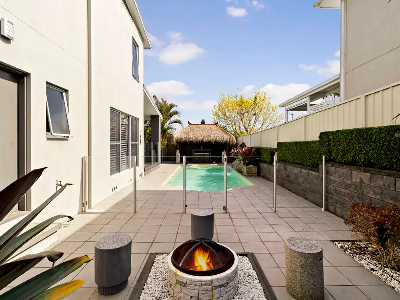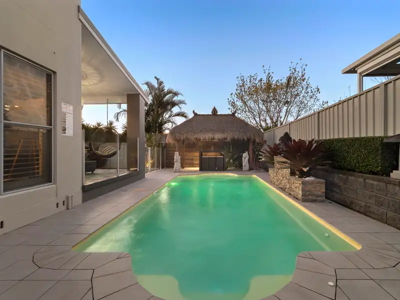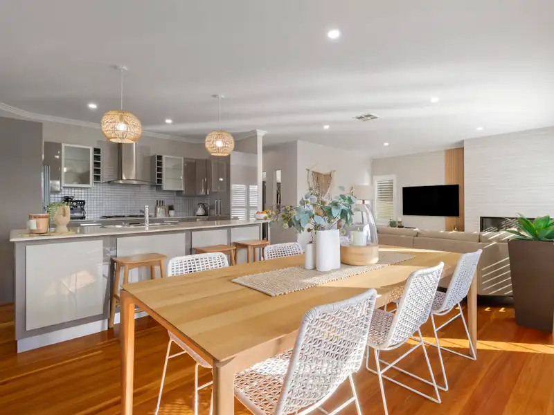 Fresh air, poolside vibes, and a highly sought-after lifestyle location allow this family masterpiece to deliver the thrill of holiday living every day of the week. Spanning free-flowing split-levels and taking cues from its coastal surroundings, interiors reveal crisp décor with the warmth of timber flooring and the class of plantation shutters. Modern throughout, a stylish island kitchen anchors an open-style living area plus there's a versatility of another oversized living zone on the top floor - this four bedroom plus office haven provides ample space for families at all stages of life. A private garden oasis adjoins a beautiful outdoor living area providing a beautiful space to spark up the BBQ for weekend entertaining, and the inclusion of a stunning in-ground pool means you can choose between cooling off at home or on the lake. A flame effect gas fireplace, ducted air-conditioning and two bathrooms plus a powder room keep comfort and convenience levels high, while the attached double garage offers internal access to make unpacking the car a breeze.