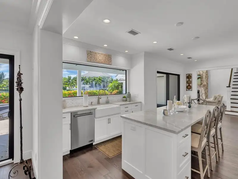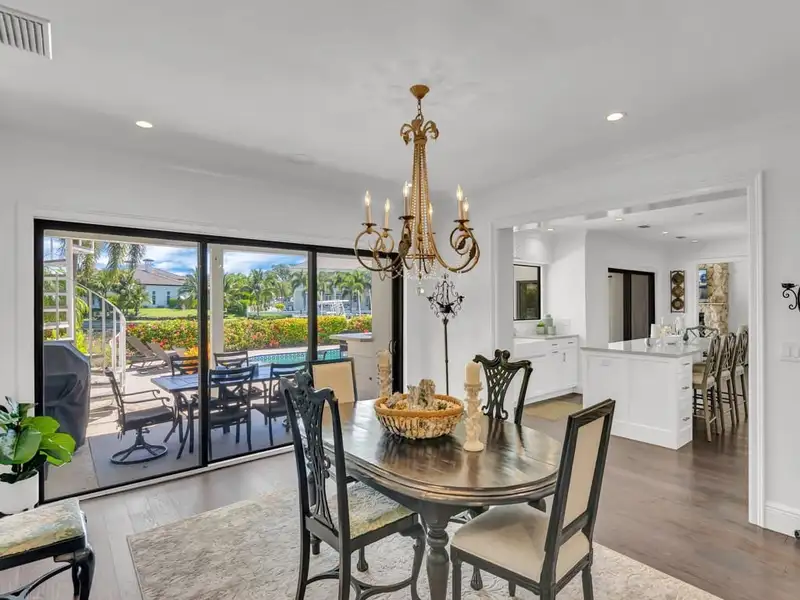 Lovely 5BR/5BA riverfront home w/over 3,700 sq ft & water views from nearly every room. Exterior amenities include outside bar & large pool overlooking the water w/spectacular views. Property and contents represented in photos is subj. to change. Sizes approx./subject to error.