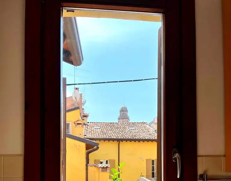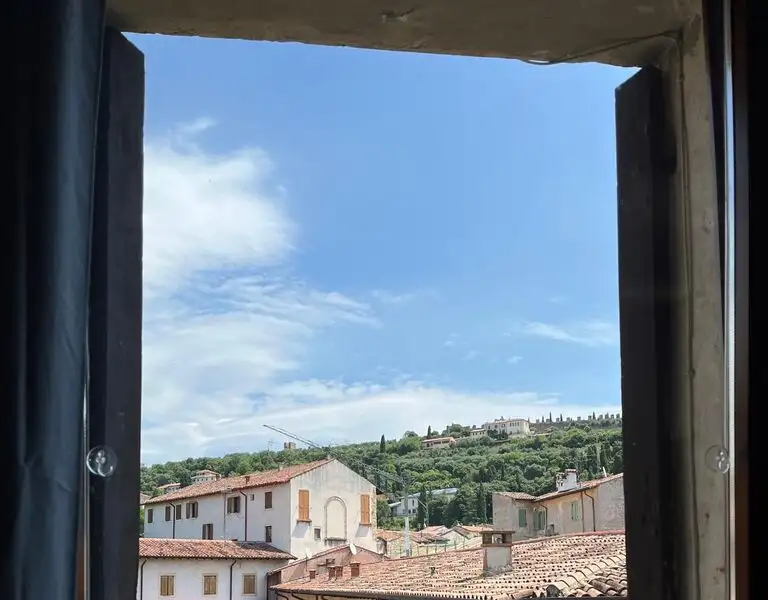 In a quiet location close to the historic center, just steps from the Roman Theater, Ponte Pietra, and Verona's main shopping streets, this charming, renovated apartment for sale is located on the second and last floor of a period building. It is very bright and airy and features a small dining terrace, a kitchen, a bright, generously sized living room, two double bedrooms, a spacious bathroom with window and shower, and a storage room. Independent heating and air conditioning are provided.