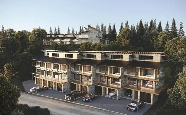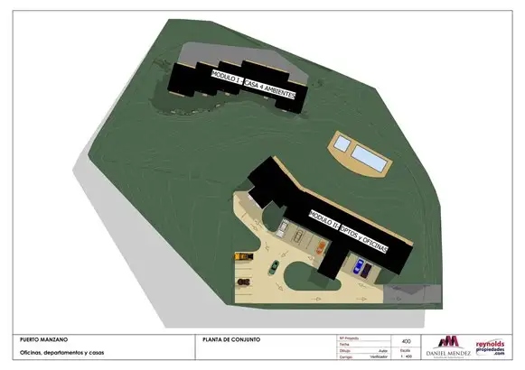El emprendimiento está emplazado sobre un lote de 5.500 m2 y cuenta con una imponente vista a la Bahía Manzano, del lago Nahuel Huapi. Consta de 24 unidadesdistribuidas en 2 módulos (ver plano):