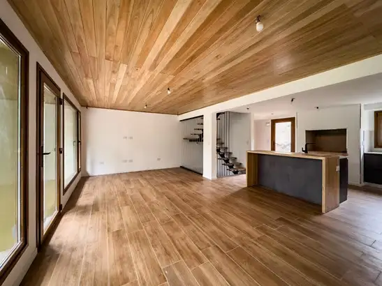Construidas con materiales de primerísima calidad, pisos de porcellanato, aberturas de PVC símil madera con doble vidrio hermético (DVH), escalera de metal y madera, amoblamiento de cocina a medida, calefacción por losa radiante, agua caliente sanitaria por termotanque (independiente de la calefacción).