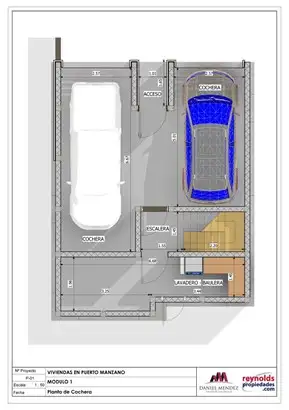 Nivel 0: con acceso desde calle pública en donde están ubicados, el ingreso principal, la doble cochera, el hall de acceso a escalera y la baulera-lavadero.