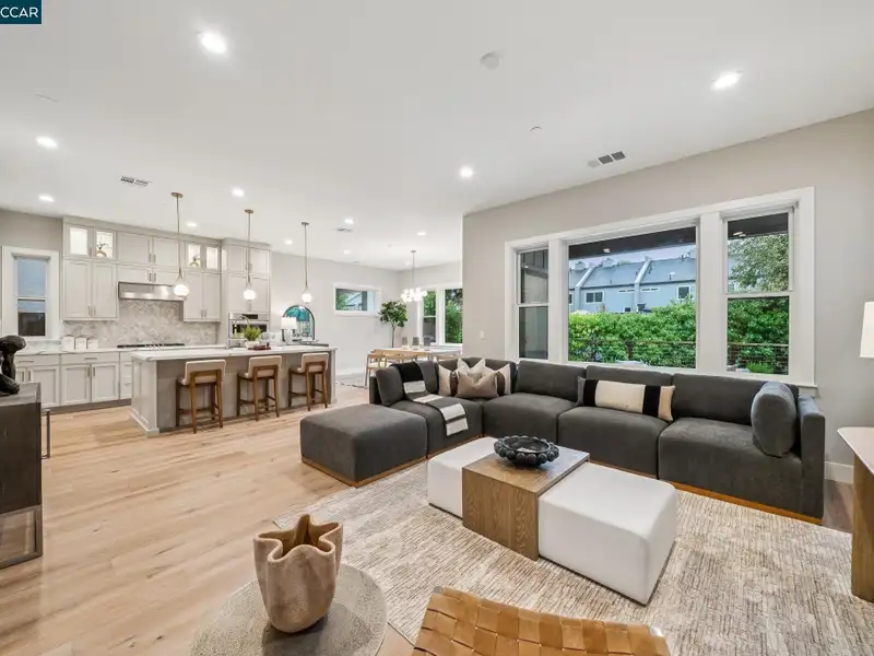 - Open-concept living with high ceilings