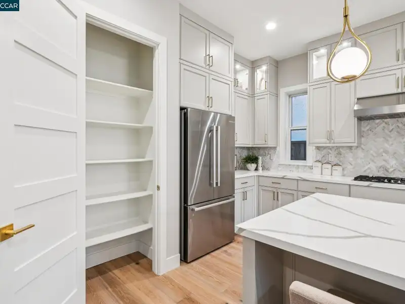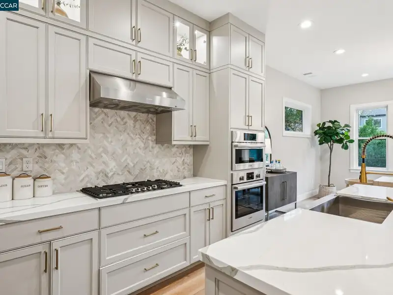 - Kitchen with quartz countertops