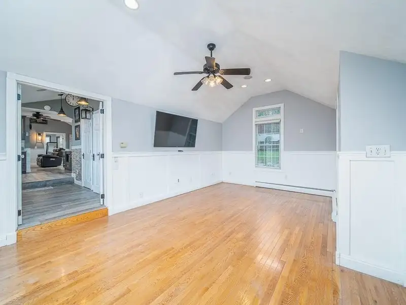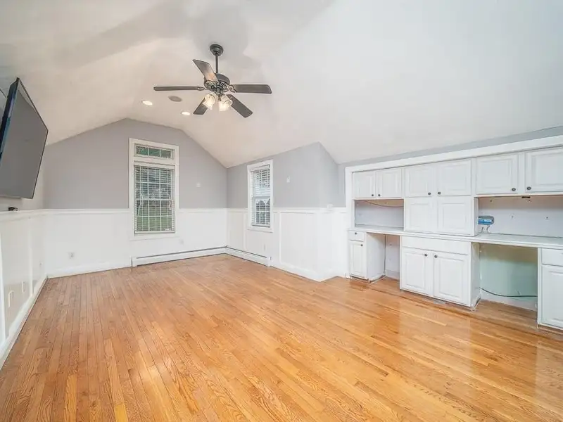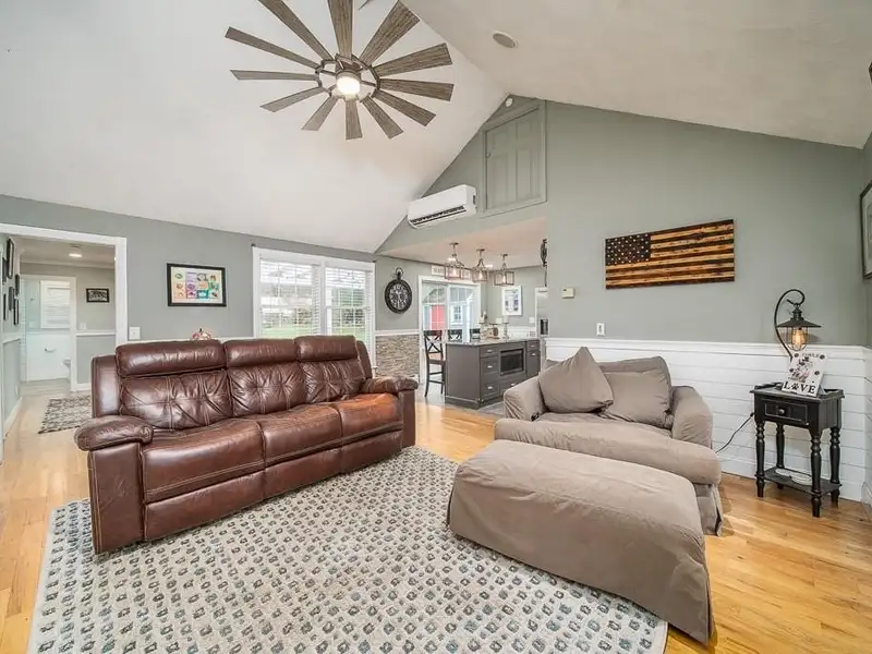 - Cathedral-ceiling family room with hardwood floors