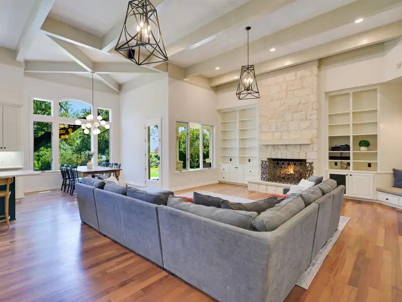 - Stone fireplace in family room