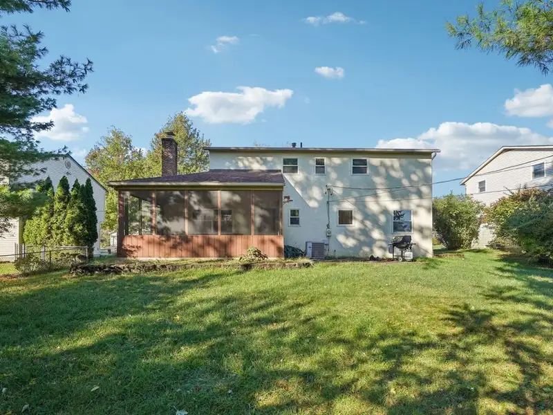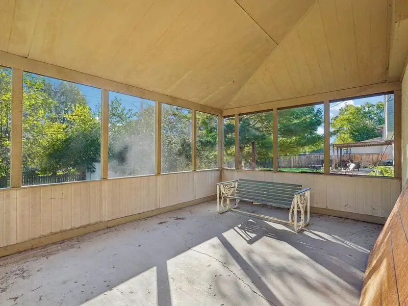 - Screened-in porch with mature trees