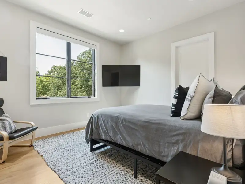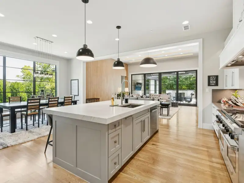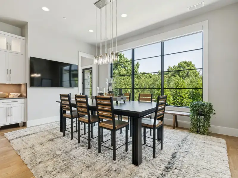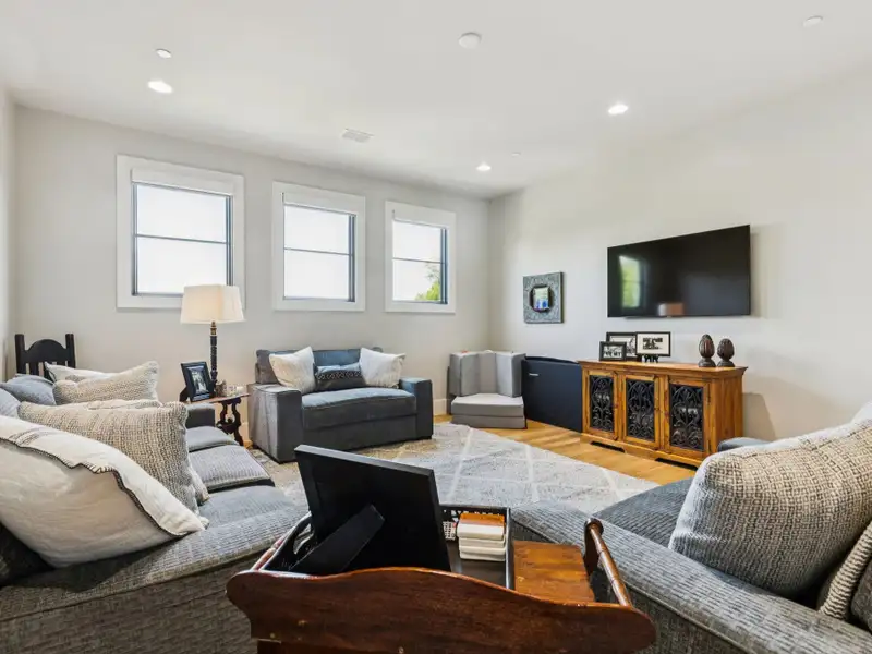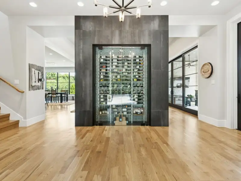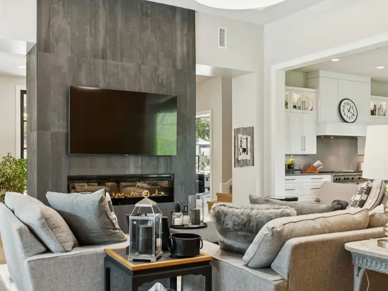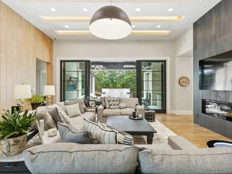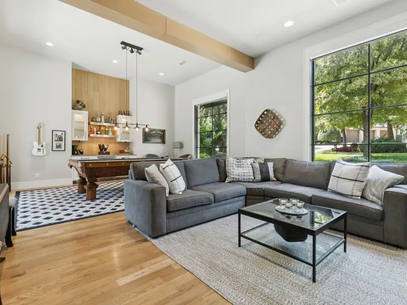 - Spacious great room with white oak feature wall