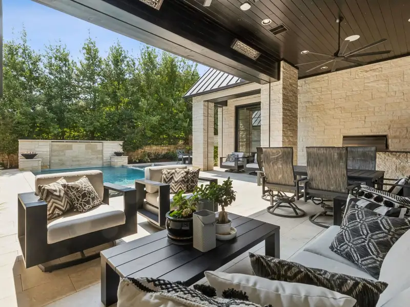- Backyard oasis with pool, spa, and fire bowls
