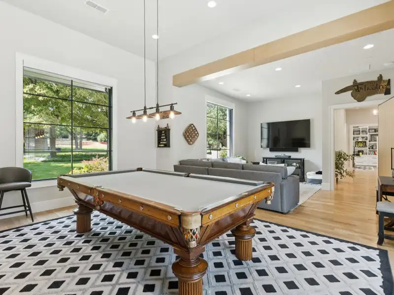 - Large game room with wet bar opening to pool