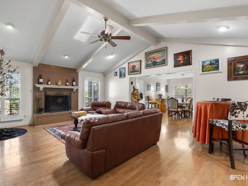 - Vaulted ceiling with wood-burning fireplace