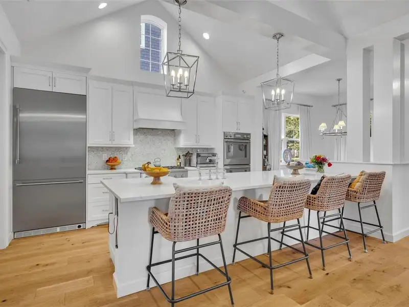 Relax on the charming front covered porch, the perfect spot to enjoy your morning coffee. Step inside to find meticulous attention to detail—from stunning wide white oak floors to exquisite custom millwork and soaring ceilings that create an airy, welcoming atmosphere.