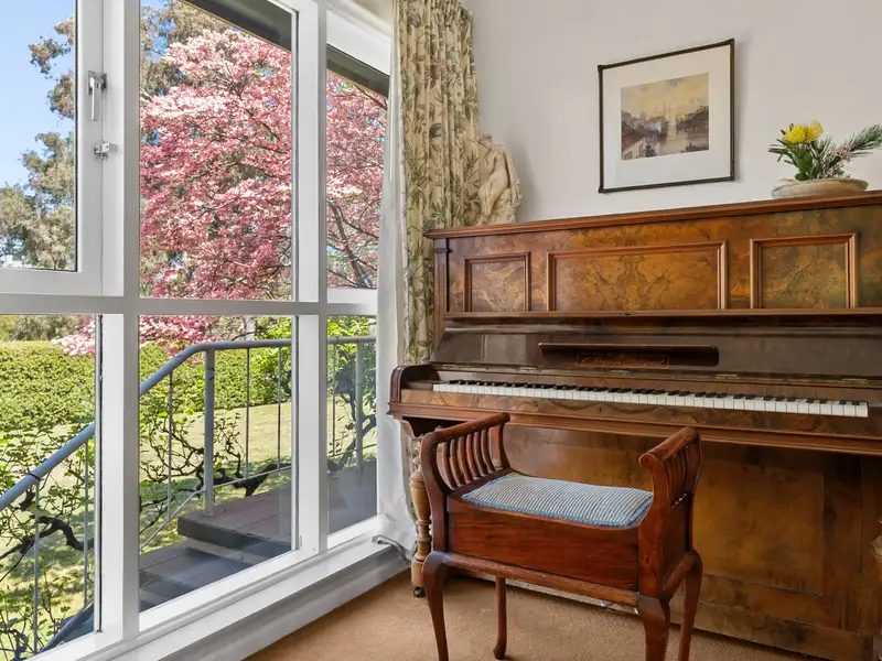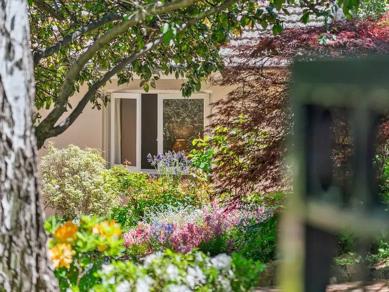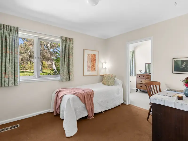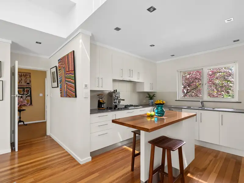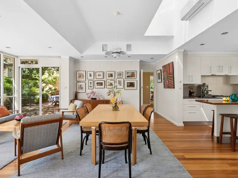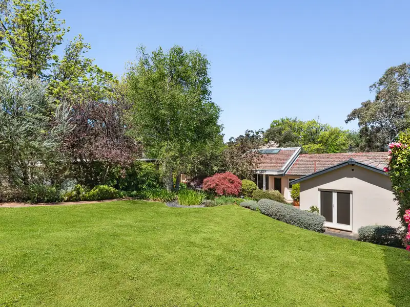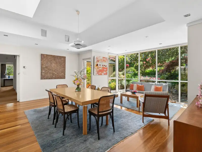 Exuding warmth, light, and architectural charm, this beautifully updated home offers a flexible floorplan with a wonderful selection of living and entertaining spaces. The elegant formal lounge, complete with an open fireplace, large picture windows, and seamless access to a dapple-shaded terrace, provides the perfect setting for relaxing or hosting guests. At the heart of the home, striking vaulted ceilings, skylights, and rich timber floors combine to create a sense of space and sophistication, all enhanced by abundant natural light and tranquil views over the established gardens.