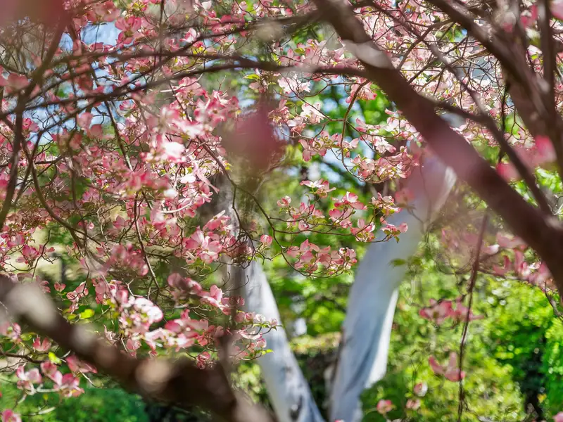 A seamless blend of timeless mid-century character and contemporary design offering sun-drenched living spaces with floor-to-ceiling windows that frame lush, colourful gardens within a tranquil and light-filled sanctuary.